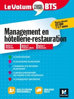 Destiné aux futurs professionnels de l'hôtellerie-restauration, cet ouvrage propose une synthèse des connaissances du pôle « Management opérationnel de la production de services en hôtellerie restauration » enseigné dans les 3 options du BTS Ecrit par Corinne Hacquemand et Denis Courtiade https://www.editions-foucher.fr/livre/le-volum-bts-mhr-management-de-l-hotellerie-restauration-revision-et-entrainement-9782216153398