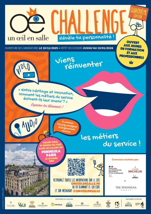 Cette semaine, nous sommes heureux de vous annoncer le lancement de la quatrième édition du Challenge Un oeil en salle au Peninsula Paris Le thème 2026 retenu : "Entre héritage et innovation, comment les métiers du service écrivent-ils leur avenir ?" Cela fait des mois que nous travaillons activement sur cette nouvelle édition, ouverte aux professionnels et aux...