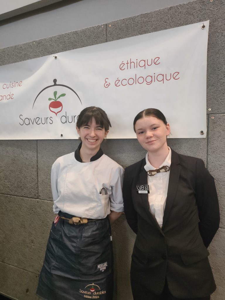 A deux ans du transfert de ses formations à Rennes, le lycée hôtelier Notre-Dame de Saint-Méen-le-Grand continue sa razzia de titres, de podiums dans le cadre des concours inter-écoles, que ce soit au niveau régional ou au niveau national. Cette semaine, 5 élèves se sont à nouveau illustrés par leurs talents, sérieux et persévérance. Pour commencer, deux jeunes filles du lycée, coachées par Bertrand Hallier en cuisine et David Frabot en service, l’élève de terminale service Yseult Charreteur et la prometteuse seconde cuisine Louane Minard, participaient, après avoir été sélectionnées sur projet et dossier, à la finale nationale du concours “Saveurs Durables” ;. Cette manifestation se déroulait au lycée Val de Bièvre de Gentilly. Le thème retenu était le chou-fleur, thème qui a donné du fil à retordre aux différents candidats. Les deux mévennaises s’offrent la deuxième place, derrière le lycée du Castel de Dijon, avec une mention spéciale pour le dessert. Elles ont montré également un bel esprit d’équipe, ont proposé un beau travail pour la décoration de salle, les faisant se démarquer des autres participants. Elles ont même décroché un 20/20 pour le cocktail !