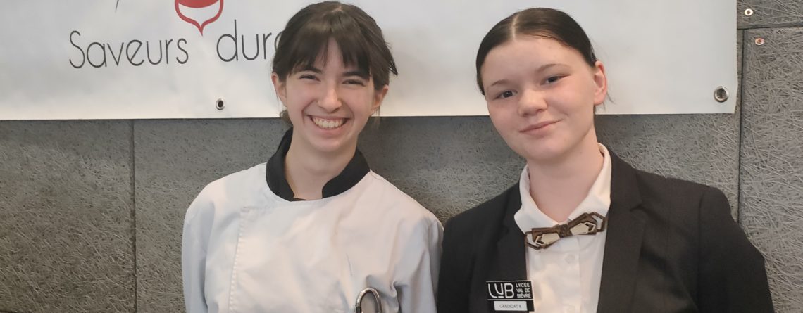 A deux ans du transfert de ses formations à Rennes, le lycée hôtelier Notre-Dame de Saint-Méen-le-Grand continue sa razzia de titres, de podiums dans le cadre des concours inter-écoles, que ce soit au niveau régional ou au niveau national. Cette semaine, 5 élèves se sont à nouveau illustrés par leurs talents, sérieux et persévérance. Pour commencer, deux jeunes filles du lycée, coachées par Bertrand Hallier en cuisine et David Frabot en service, l’élève de terminale service Yseult Charreteur et la prometteuse seconde cuisine Louane Minard, participaient, après avoir été sélectionnées sur projet et dossier, à la finale nationale du concours “Saveurs Durables” ;. Cette manifestation se déroulait au lycée Val de Bièvre de Gentilly. Le thème retenu était le chou-fleur, thème qui a donné du fil à retordre aux différents candidats. Les deux mévennaises s’offrent la deuxième place, derrière le lycée du Castel de Dijon, avec une mention spéciale pour le dessert. Elles ont montré également un bel esprit d’équipe, ont proposé un beau travail pour la décoration de salle, les faisant se démarquer des autres participants. Elles ont même décroché un 20/20 pour le cocktail !