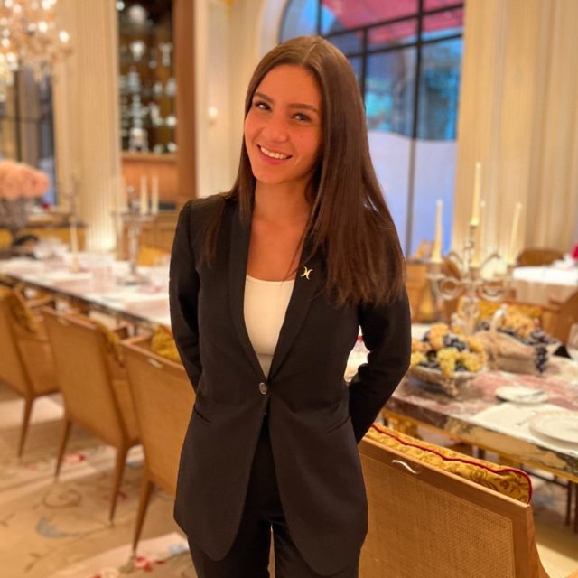Aujourd’hui, et grâce à l’ouverture du restaurant Jean Imbert au Plaza Athénée *, j’officie à ses côtés en tant que Première Maître d’hôtel dans ce restaurant à l’âme si particulière. Assoiffée de savoir, curieuse de la vie et observatrice de toutes techniques, je peux maintenant affirmer que je me surpasse et m’épanouis au quotidien, entourée par une équipe dynamique et professionnelle. Je dirais que la recette à cet épanouissement est évidente : de la persévérance , de la rigueur et de la volonté doublés d’un soupçon de sincérité, de simplicité, mais aussi et surtout la magie des bonnes rencontres. »