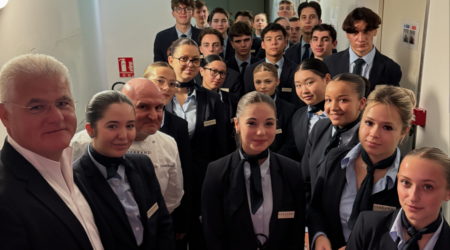 Le 7 mars dernier, Jean-Sébastien Aubert, Maître d’Hôtel au Sénat, a accueilli une cinquantaine de jeunes élèves de Bac Technologique du Lycée Hôtelier de Poligny (Jura) pour leur faire visiter ces locaux emblématiques et partager avec eux son expérience.